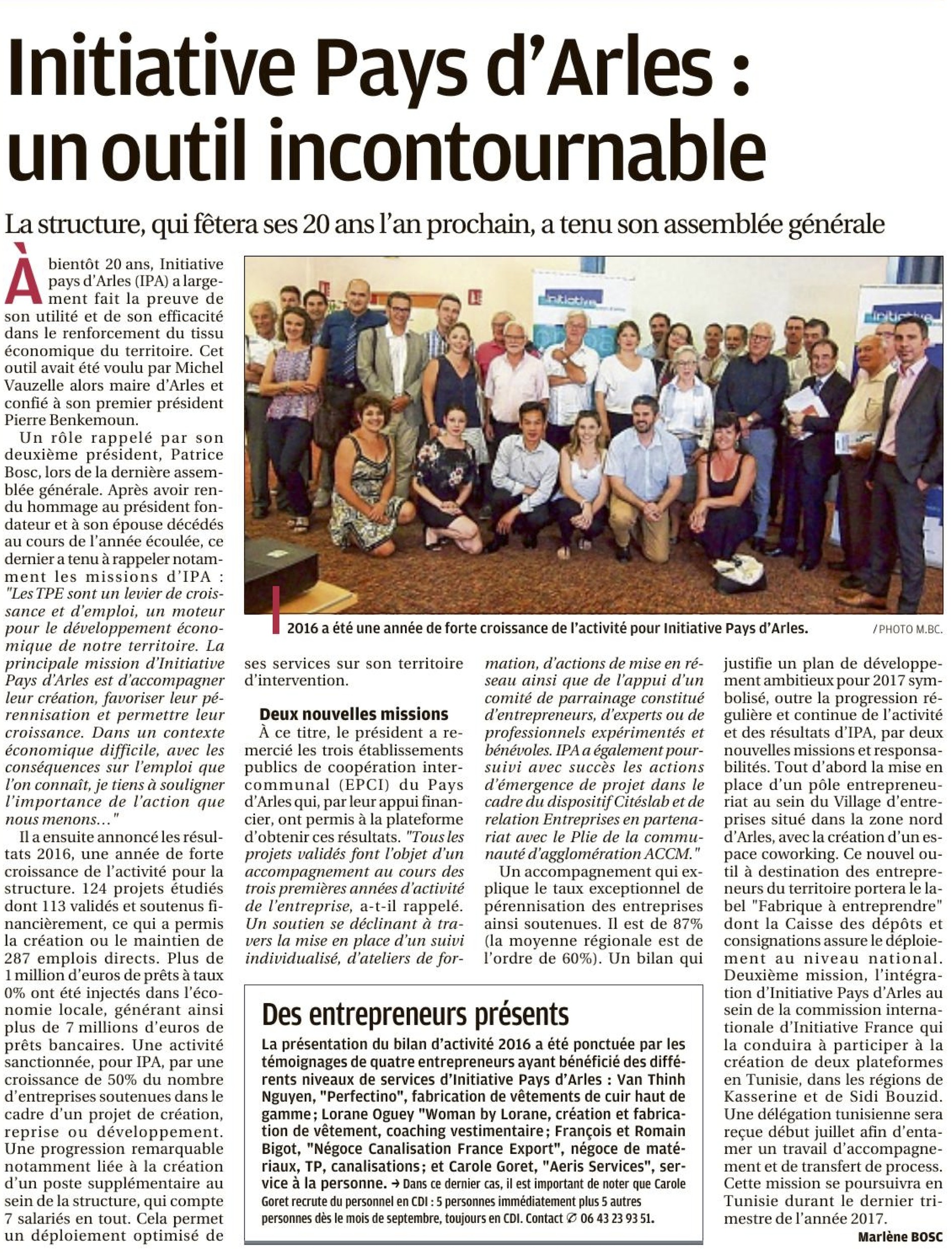 Article La Provence : 19ème Assemblée Générale en présence de partenaires techniques et financiers et d'entrepreneurs soutenus par la plateforme.