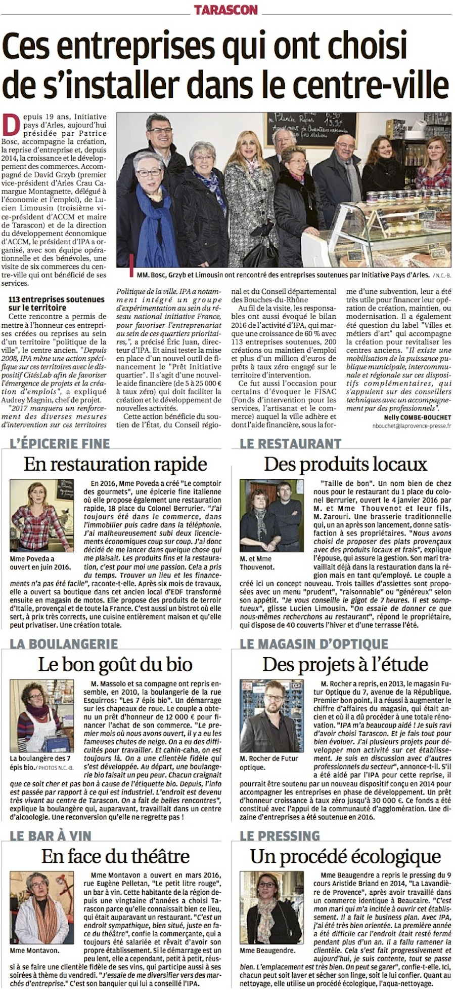 Article La Provence : présentation de quelques entreprises qui ont choisi de s'installer dans le centre-ville de Tarascon
